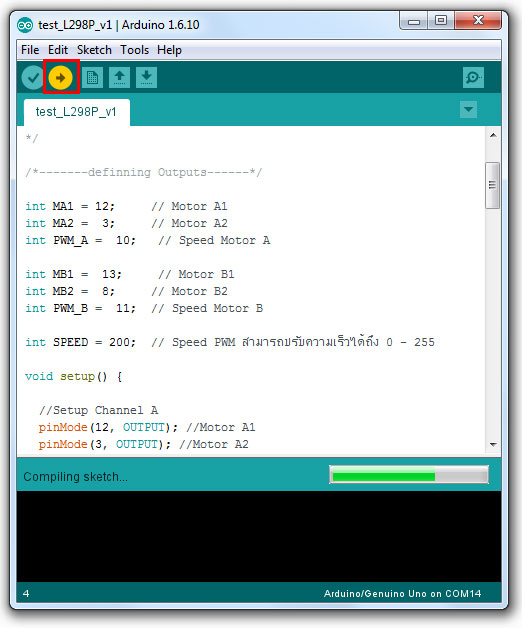 เปิดโปรแกรม Arduino (IDE) และ Upload โค้ดนี้ ไปยัง บอร์ด Arduino UNO R3